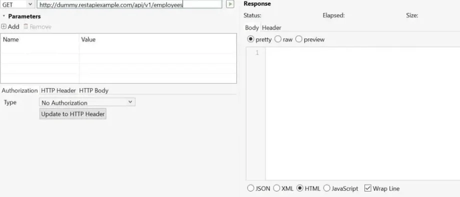 V tejto ukážke budeme používať verejnú fiktívnu rozhranie REST API – RestApiExample.