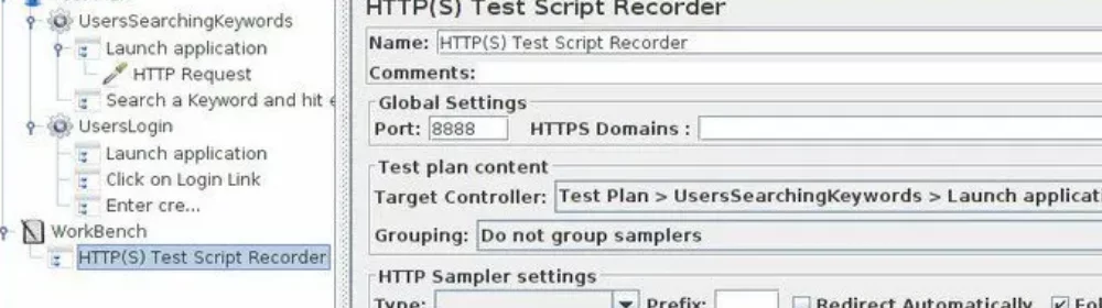 Na efektívne vykonanie tohto úkonu nám JMeter poskytuje nástroj HTTP(s) Test Script Recorder, pomocou ktorého môžeme zaznamenávať skripty v JMeter priamo vykonávaním operácií v prehliadači.