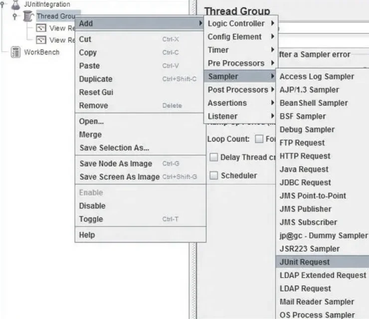 - Najprv pridajte „JUnit Request“ do skupiny Thread